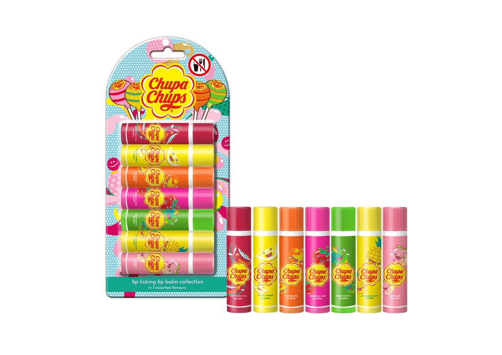 Keep your lips soft, hydrated, and deliciously scented with the vibrant Chupa Chups Lip Balms Multi-Pack. Featuring seven fruity flavors inspired by classic candy favorites, this blister pack offers a fun and flavorful lip care experience for every mood.