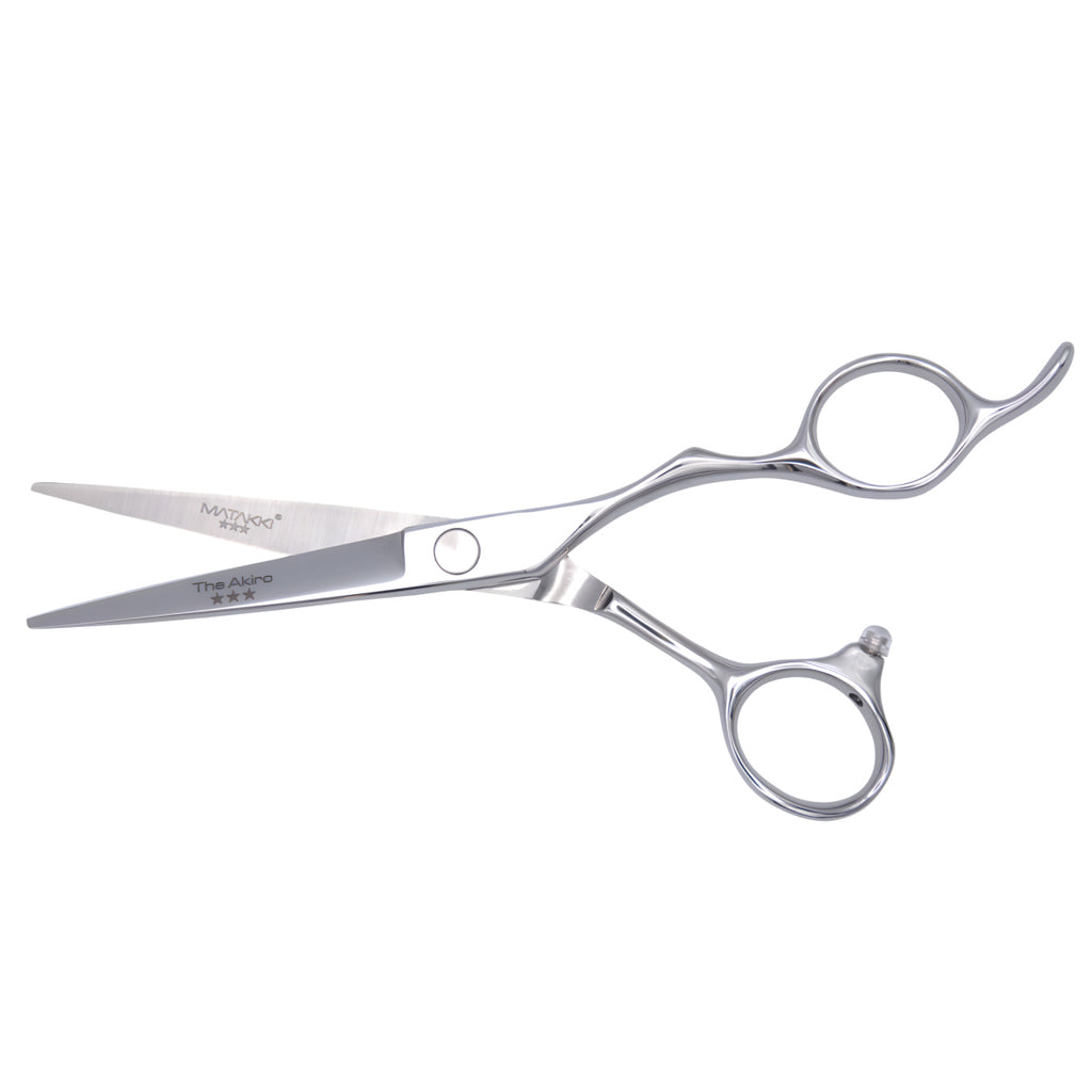 Introducing the Matakki Akiro 5.75" hair-cutting scissors, a premium tool designed for professional hairstylists seeking precision and comfort. Crafted with high-quality materials and an ergonomic offset handle, these scissors ensure superior performance for various cutting techniques. Incorporating the Matakki Akiro 5.75" hair-cutting scissors into your toolkit means investing in a blend of ergonomic excellence and cutting-edge performance, ensuring both your comfort and the satisfaction of your clients.